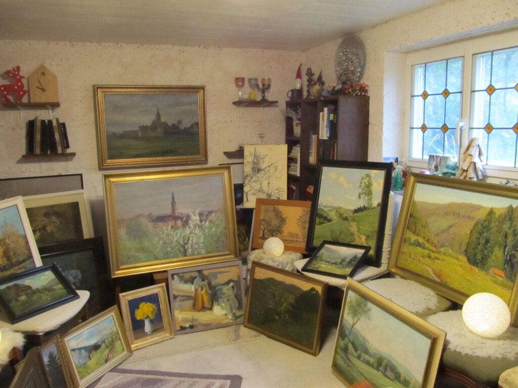 Josef Burger (1887-1966), Im Schwarzwald 1927 / H.R. Felspartie im Schwarzwald 1910 / Albert Braunstein, Wiesenlandschaft mit Bäumen / Ernst Gottwald (1886-1955), Blumenstrauß mit Rittersporn aus dem Jahr 1924 / Blick ins Schuttertal 1942 / Hellmut Eichrodt (1972-1943), Schwarzwaldlandschaft 1921 / Josef W. Keller-Kühne (1902-1991) Löwenzahn / Hugo Klingemann (1869-1942), Blühender Strauch in der Abendsonne um 1900 / Hubert Wedekind (1912-?) Schwarzwaldhaus 1946 / Fritz Dresch (1892-?) Ansicht von Bühl-Dorf mit Kirche / Karl Heilmann (1881-1937) Frühling im Schwarzwald/Emilio Brischle Offenburg-Ansicht in Öl/Armin Göhringer/Stilleben; Eva Berberich (1942), im Zwinger 1968