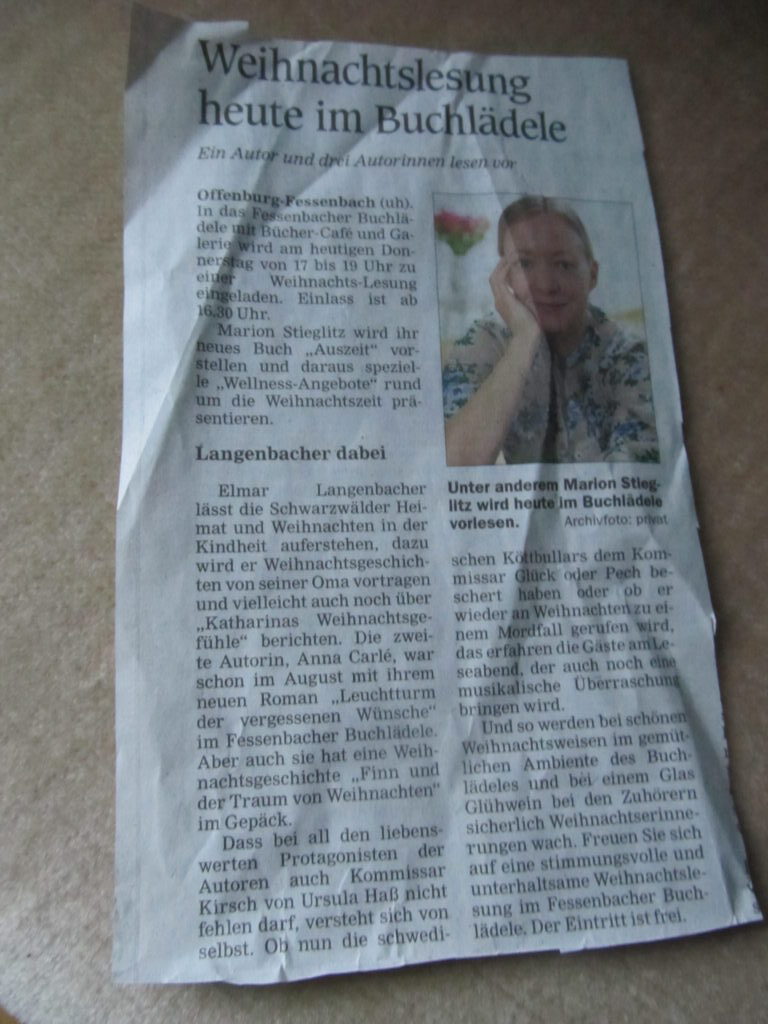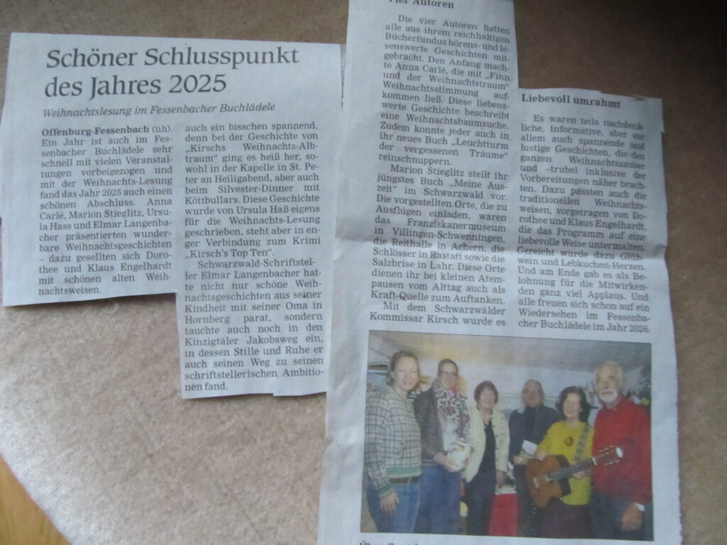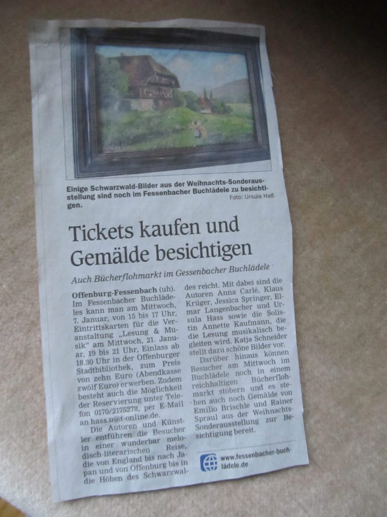 Hier finden Sie eine kleine Auswahl an Presseberichten und Zeitungsausschnitten über Autorin Ursula S. Hass und ihr Fessenbacher Buchlädele & Büchercafé. (Klicken Sie auf einen der Presseberichte um diesen größer anzeigen zu lassen)